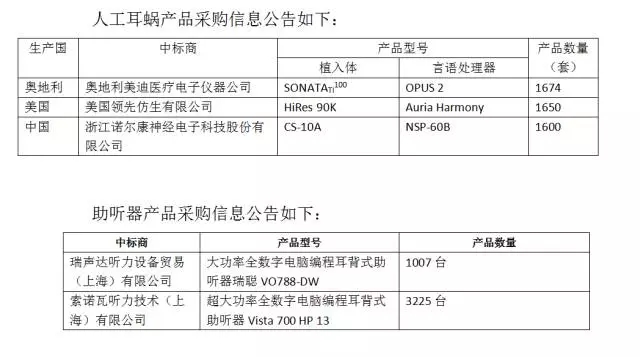 截至3月15日,中国听力语言康复研究中心(原中国聋儿康复研究中心)受22省残联委托,完成2016年度4924套人工耳蜗和4232台助听器采购工作(产品信息见附件),其中人工耳蜗按照各省委托采购数量按比例分配3种产品,助听器按照各省委托的不同功率数量分配。采购产品将由中标商直接发给22省残联。