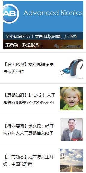 “人工耳蜗俱乐部”微信公众号(erwojulebu)发布了第三期的资讯,截图如下: