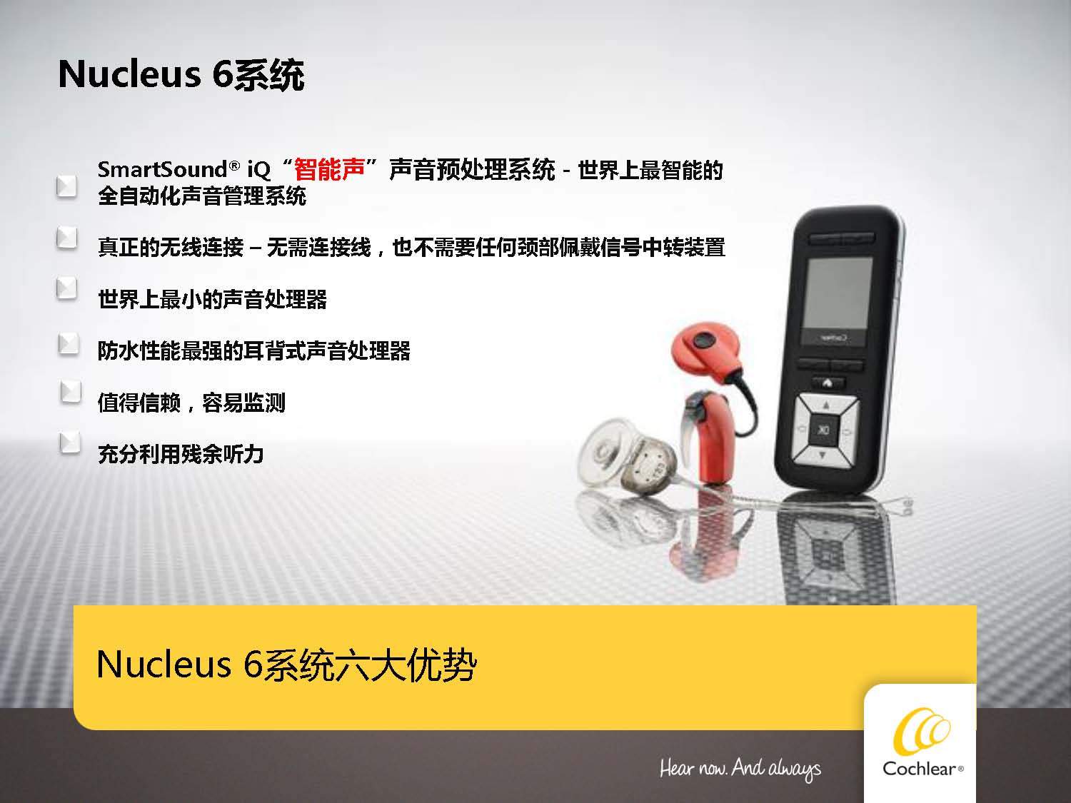 Nucleus6系统的上市发布获得大会现场媒体、耳科医生及相关专业人士的高度关注。Nucleus6系统是科利耳迄今为止推出的最先进的声音处理器,N6的面世发布必将提升人工耳蜗产品的技术水准,刷新听觉体验。对听障群体而言,每一次科利耳声音处理器的上市发布,都可以让他们愈加贴近自然声音,生活中更加贴近梦想。