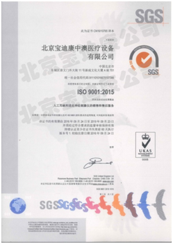 2016年9月,北京宝迪康中澳医疗设备有限公司(以下简称:北京宝迪康)获得SGS颁发的质量管理体系认证证书,正式通过ISO9001:2015国际质量管理体系认证,这在全国同行业中尚属首家。
