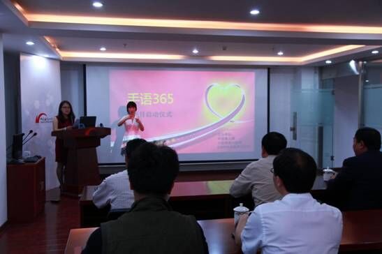 今天启动的“手语365”公益项目,内容包括开发《手语365》教材辅助读物,研发“手语365”视频,打造关爱聋人爱心平台等,其目的是聚集社会爱心力量,围绕聋人的生活,以家庭、学校、社会为核心主题,365天,365句,传达对聋人的关爱,形成全社会关爱残疾人的氛围,引导社会关注无障碍沟通,关爱听障人群,建立友善温暖的社会新环境,共建社会和谐大家庭。