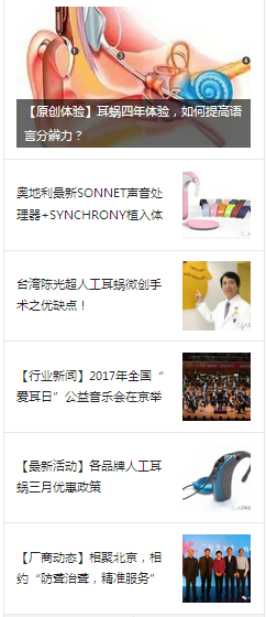 “人工耳蜗俱乐部”微信公众号(erwojulebu)发布了第五期的资讯,大家可以更多了解奥地利最新的产品介绍,以及台湾陈光超医生微创手术的优缺点。