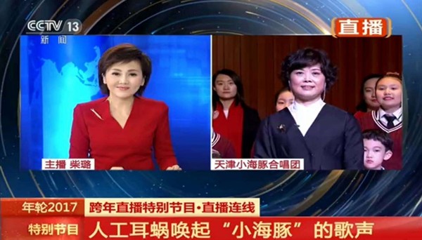 2017年12月31日,央视新闻频道的跨年直播特别节目【年轮2017】,以拼图的形式回顾过去这一年,拼图的第一块是来自天津“小海豚”听障儿童合唱团为我们带来的最暖心的跨年演出—合唱《叫醒耳朵》。