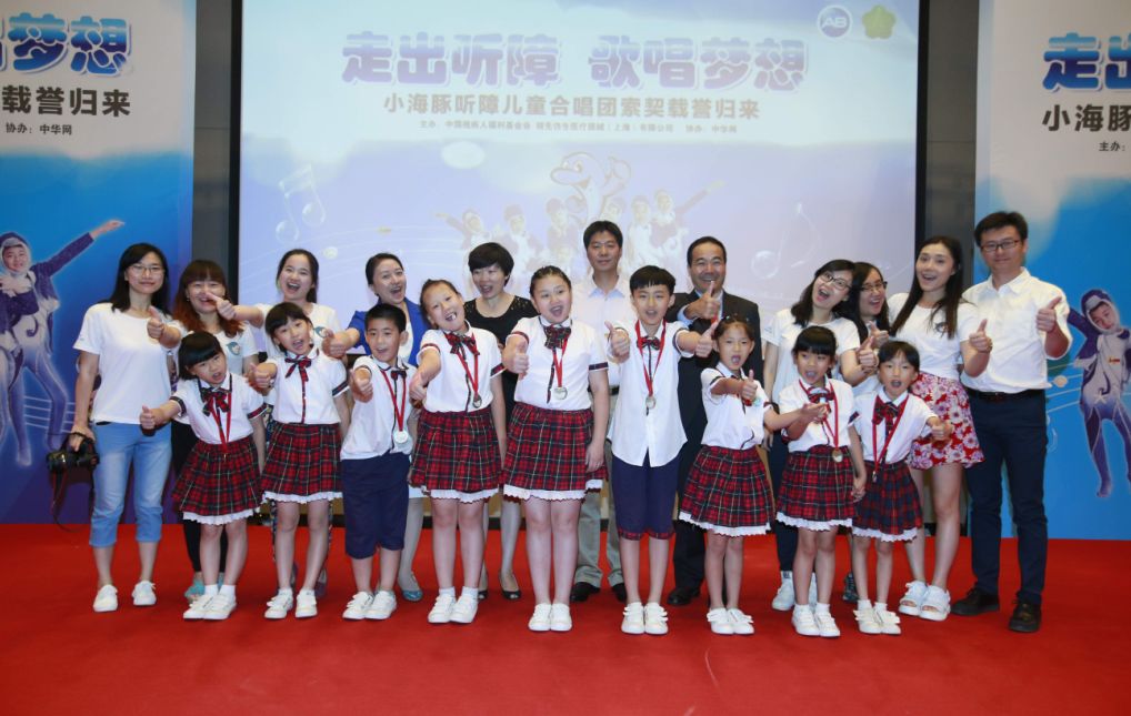 小海豚听障儿童合唱团,是全世界第一支全部由佩戴人工耳蜗的听障儿童组成的合唱团。2014年11月8日由肖玲女士发起成立,由著名作曲家张如昕先生为艺术指导和驻团作曲家,邱丽娜女士为指挥及声乐指导,多位来自各界的爱心老师参与其中。秉承“科学康复、艺术陶冶、改变性格、扭转命运”的宗旨。合唱团已经成立了2年左右,孩子们经过刻苦的音乐训练,颇有成果,得到很多社会媒体和人士的支持、帮助和认可。今年7月 小海豚听障儿童合唱团参加在俄罗斯索契举行的,有着全世界最大规模比赛之称的“世界合唱比赛”,并获得了表演民谣组公开赛银奖。对于小海豚听障儿童合唱团 来说,世界合唱大赛的赛场成为了孩子们的梦想之地,它其中包含的所有与歌唱、合唱、艺术有关的理念与认知,都将成为孩子们快速成长壮大的土壤与养分。这些 孩子也许天生残缺,但他们人生一定完美。索契就是他们步入完美人生的第一步。