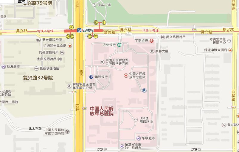 附2:北京301医院位于海淀区复兴路28号,地铁一号线五棵松站下来便是