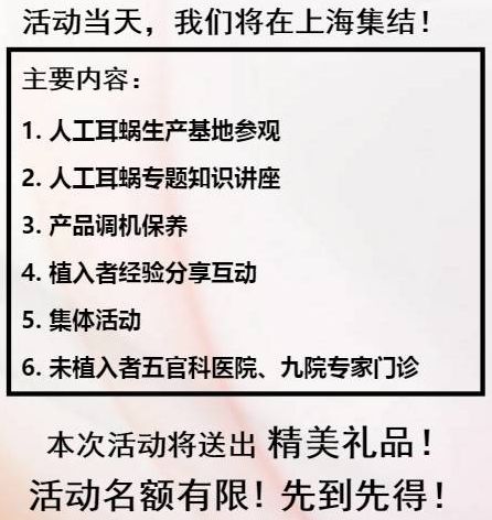如果您恰好想去复旦大学附属眼耳鼻喉科医院、上海第九人民医院进行一次听力、耳朵的检查,这次将是一个非常好的机会!