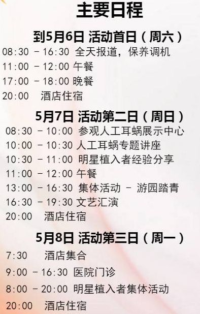 请填写下表报名!若审核通过,上海耳蜗公司将会要求您提供身份证号码,以便帮您按照住宿。未报名或报名不成功(不在名单内)的人员请与公司客服人员另行预约时间办理调机保养等事务。