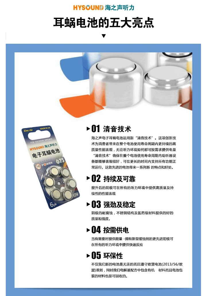 1、产品:雷特威人工耳蜗专用无汞电池(海之声贴牌)